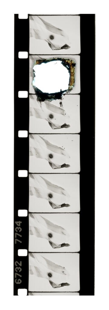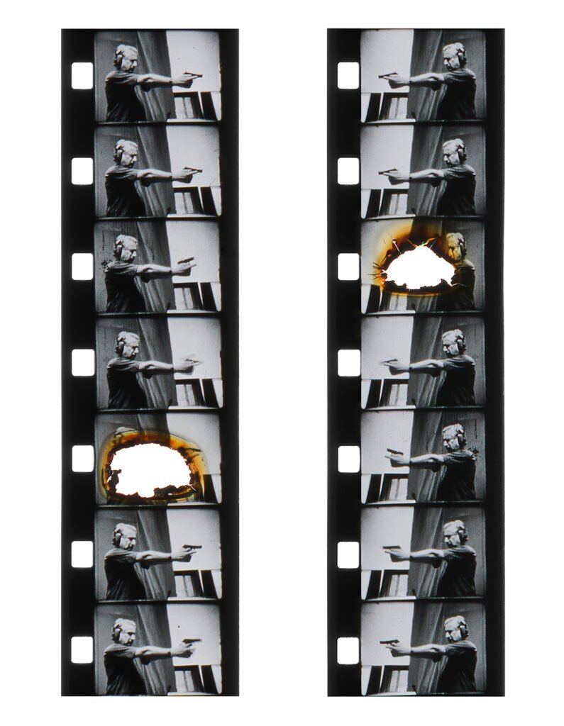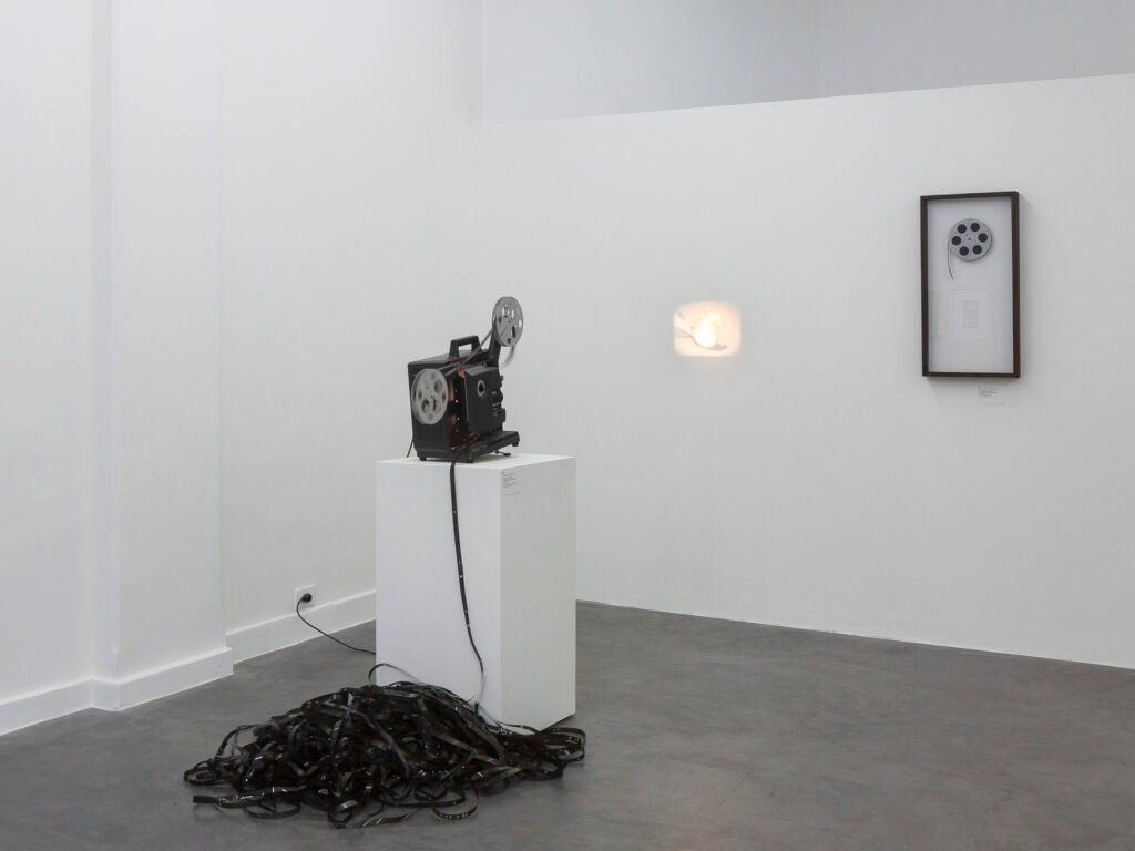 La pieza central de esta serie es un proyector de cine de 16mm intervenido, su mecánica fue alterada para que destruya la película que reproduce. De esta manera el cine, esa tecnología de la memoria, del documento, se transforma en una alegoría de los procesos del olvido.
