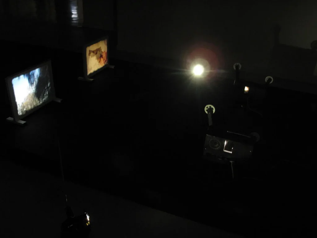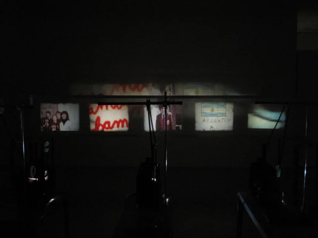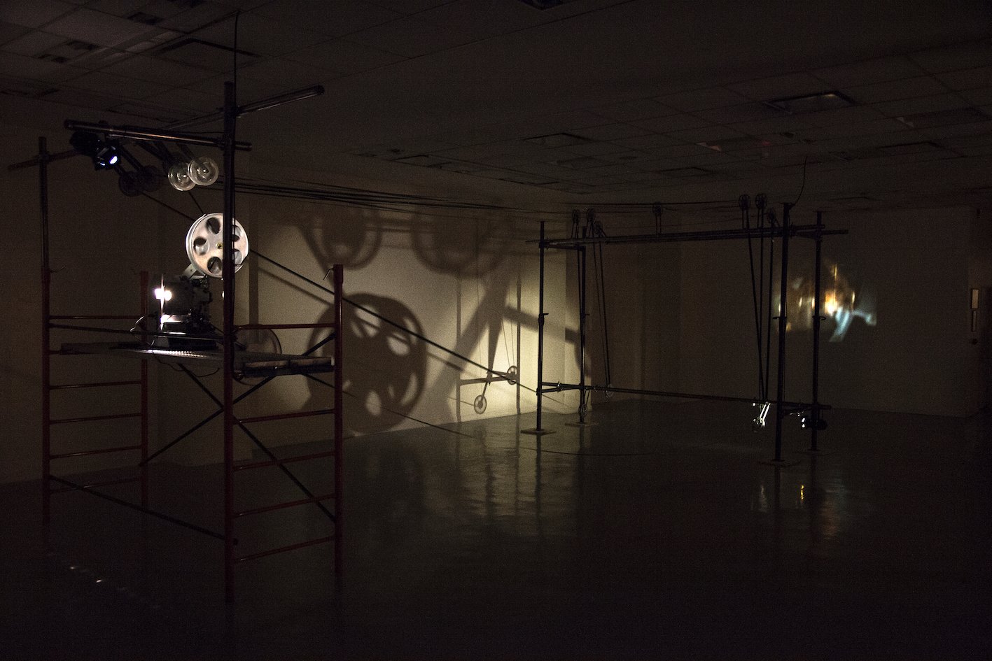 Los proyectores desde potentes maquinas de cine de 35mm a la fragilidad del Super 8 son parte fundamental de la composición de cada obra. También es esencial articular con ellos las imágenes proyectadas, las mesas, los andamios, los dispositivos mecanizados, la estructuras de circulación de la película y la propia película que sale de los proyectores para volcarse en el espacio y así describir figuras y superficies. Son diseños complejos realizados con materiales de naturalezas diversas, que el espectador descubre progresivamente en el encuentro con cada obra.