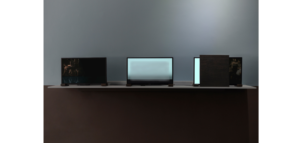 El revés de la armadura es una serie de videoinstalaciones donde objetos de hierro, proyecciones sobre papel, pantallas led y sonido espacializado juegan en tensión.