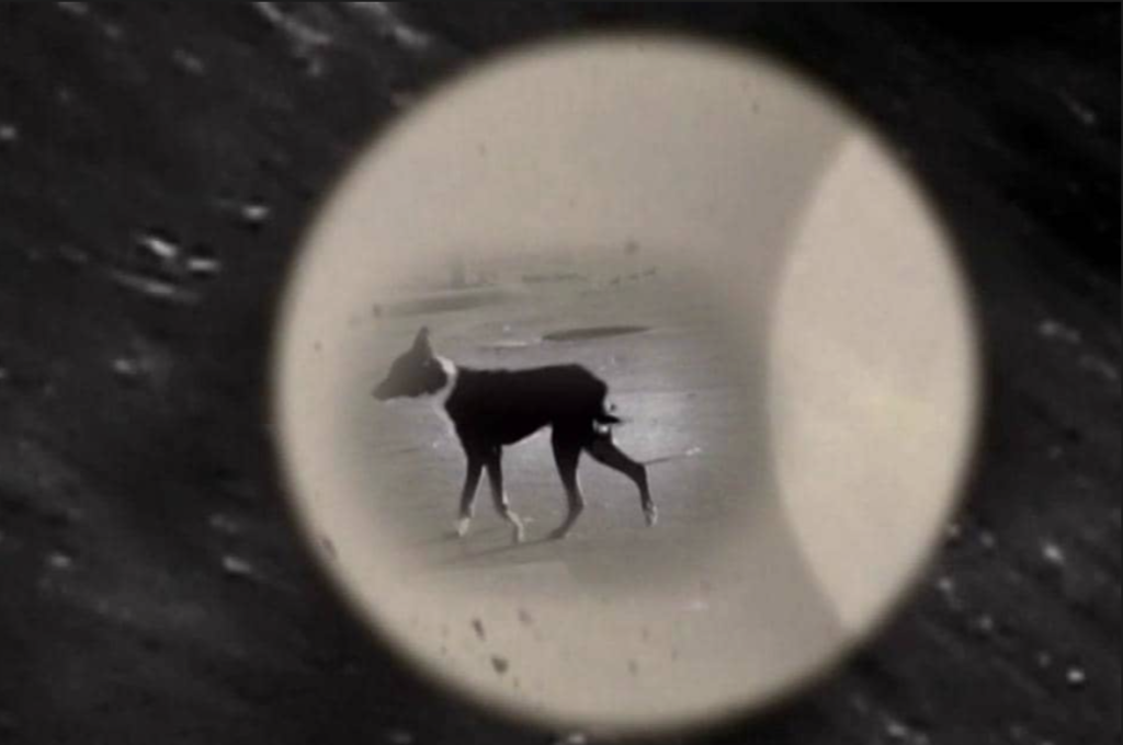 Serie de videos e impresiones sobre papel fotográfico. La luna ilumina con su luz prestada. Cruza un perro callejero, ciruja de nobles ancestros.