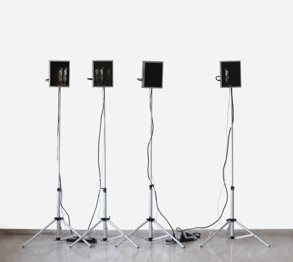 Humanized measures of time, linked to vital existence and emotions, which contrast with the impassive circularity of natural rhythms. It is time, that presence of the instant as a breaking point, urgency, the wait, space, ambiguity and the dual nature of things, the coexistence of opposites and the thresholds that separate different situations, constant themes in her work. Interested in the limits of audiovisual expressions, in the moving image, in the capacity of video to operate passages, capture gestures and point out circumstances; experimenting with several supports and materials that she models according to her poetics to figure out her concepts; exploring the possibilities and dimensions of the body -physical and virtual- through a virtuous form of delegated performance, contained by a sonorous spatiality that enriches her idiosyncratic fictions of suspended time, Silvia Rivas video installations explore the potential of the dilemma that reminds us that life is pure contingency.