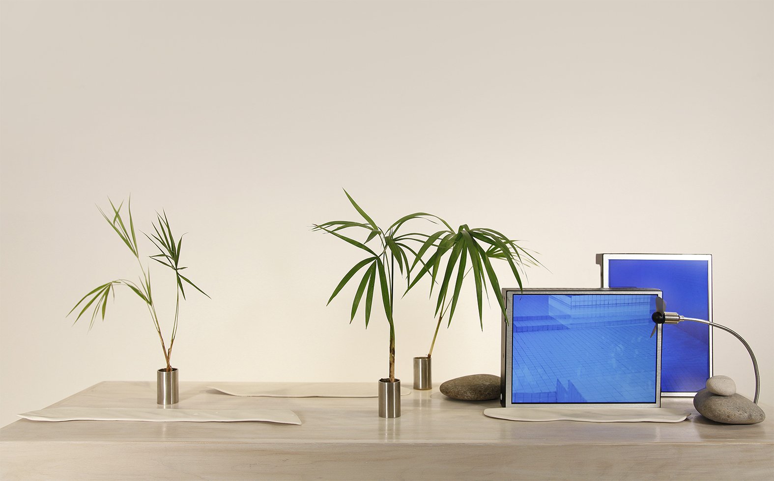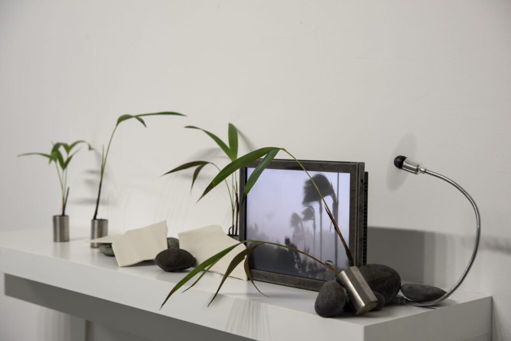 La construcción de la obra busca la contradicción, servirse del medio electrónico y la imagen en movimiento para finalmente registrar la quietud y volver una vez más al intento de materializar el tiempo.